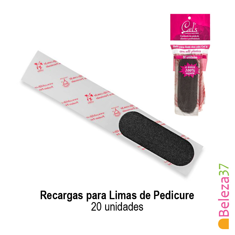 A recarga para limas de pedicure é composta de Lima fixada no refil plástico descartável, fácil de trocar e dispensa o uso de auto adesivo.