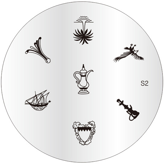 Placa metálica redonda com símbolos em preto e inscrição S2