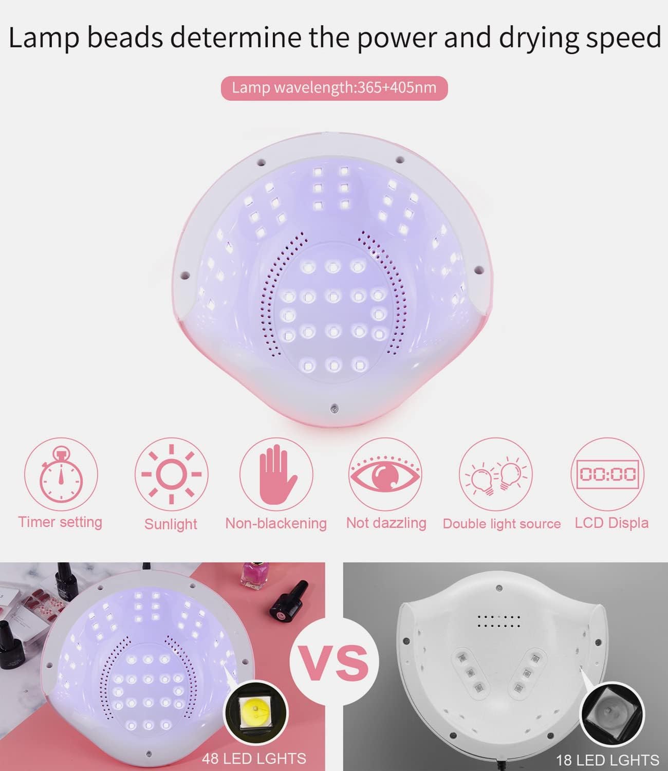 Secagem rápida e segura: O catalisador LED de unhas possui 48 pérolas de luz LED duradouras.