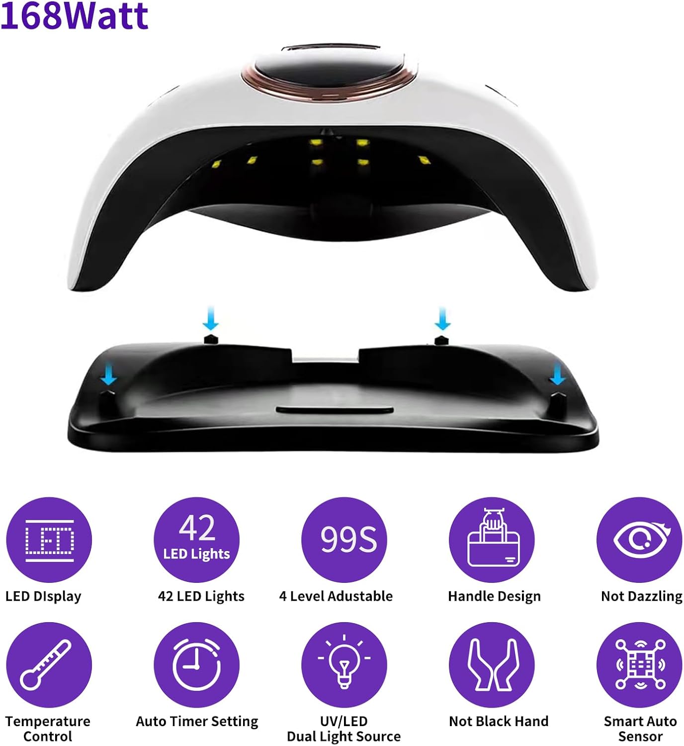 Todos os pontos de LED adotam tecnologia exclusiva - duplo comprimento de onda óptica (365nm + 405nm), permitindo funcionar com TODOS os tipos de vernizes