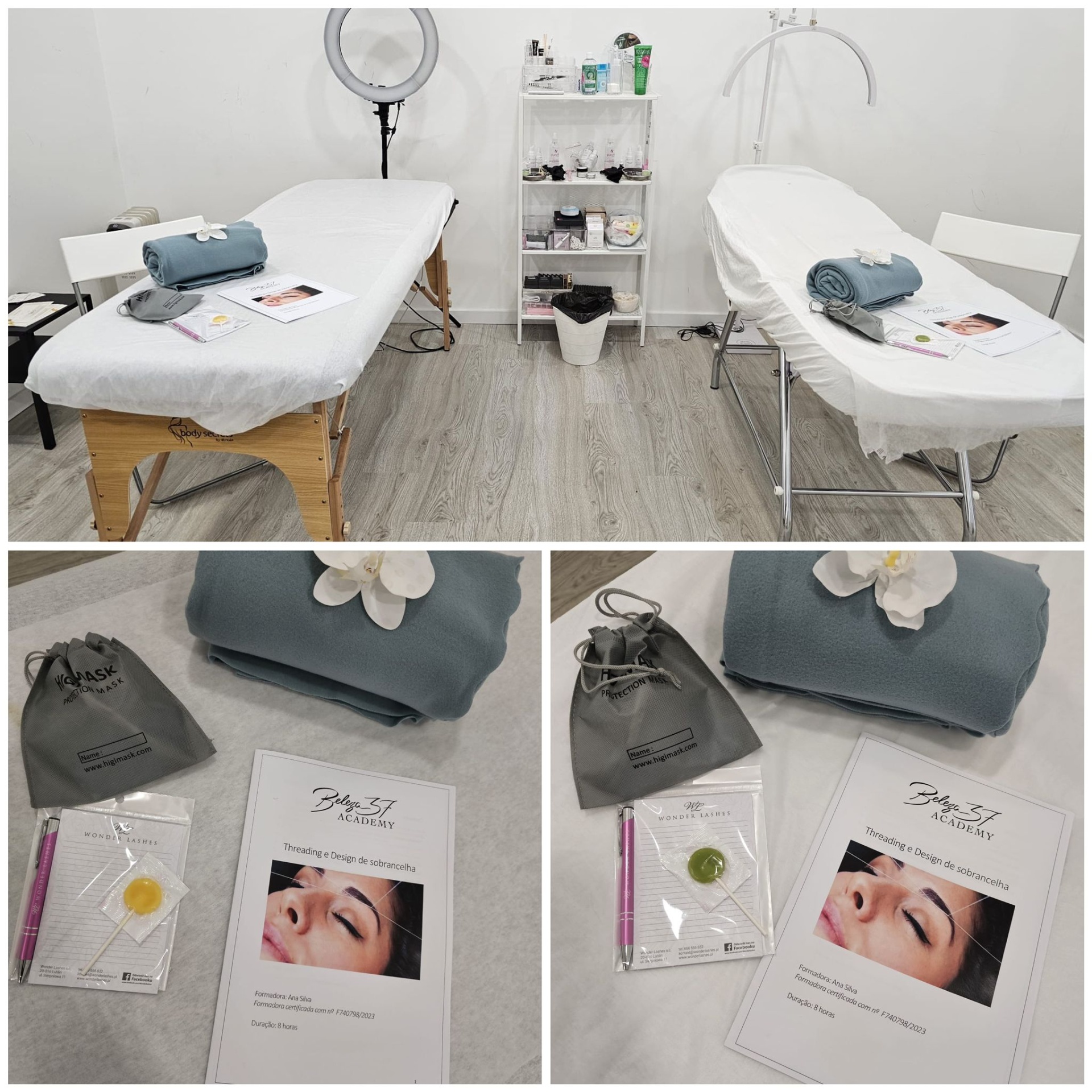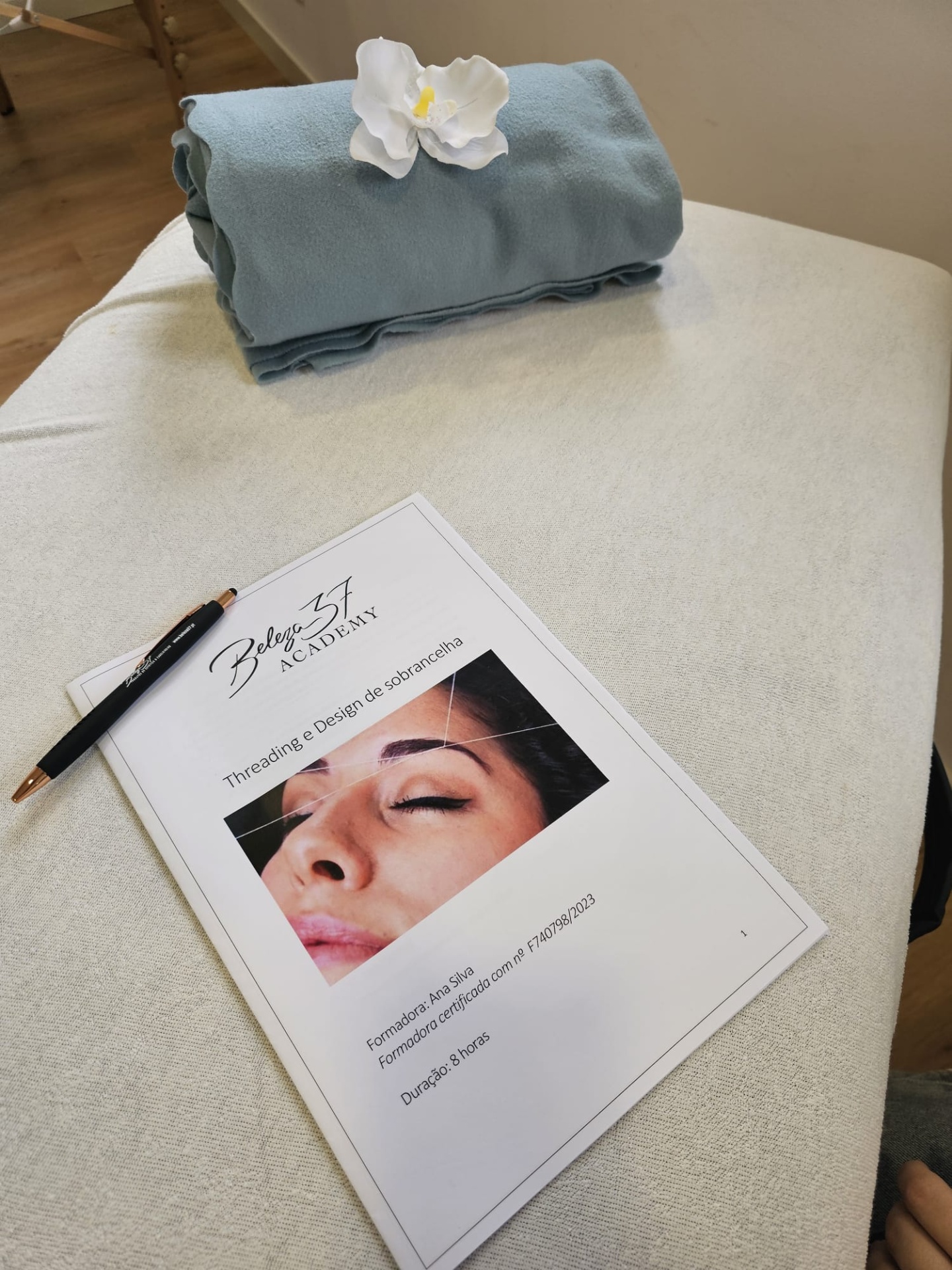 - A formação de threading é composta por uma parte teórica e prática. Conta com 8 horas intensivas de formação, onde vão aprender conteúdos como o manuseamento da linha, o design da sobrancelha, aplicação de coloração henna entre outros.