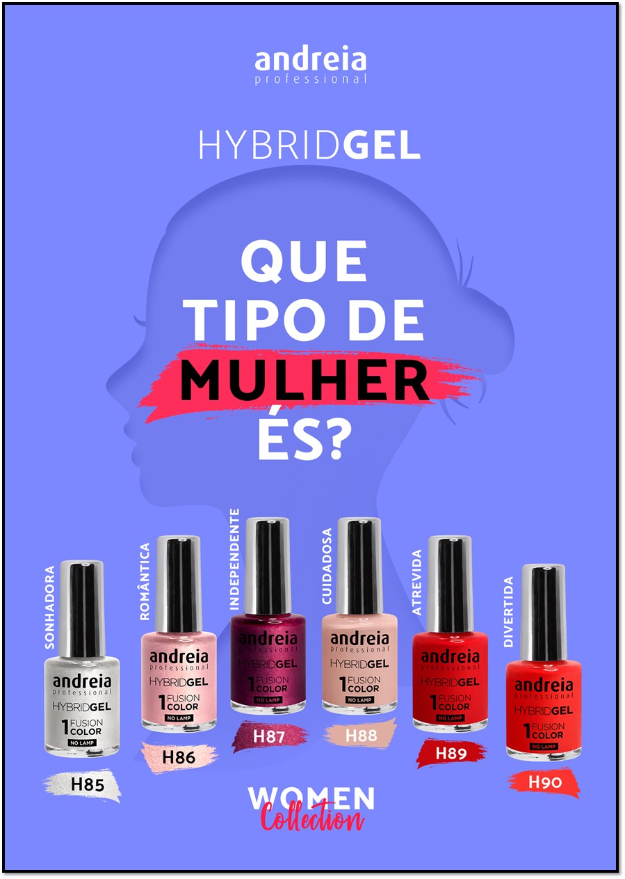 Home Andreia — Hybrid Gel HYBRID GEL ANDREIA – Woman Collection (6 Cores) HYBRID GEL ANDREIA – Woman Collection (6 Cores) 1 unidades em stock | SKU: B3233 18,00 € Desconto de %. IVA incluído. Comprar Contactar Adicionar à wishlist “Que tipo de mulher és?” - Este foi o mote para a nova coleção HYBRID GEL – WOMEN COLLECTION. 6 tons para 6 diferentes tipos de mulher. Descubra o seu tom Cores incluídas na coleção: H85 – Sonhadora: Glitter branco com reflexos prateados. H86 – Romântica: Glitter rosa com reflexos dourados. H87 – Independente: Beringela com ligeiro brilho. H88 – Cuidadosa: Nude. H89 – Atrevida: Vermelho. H90 – Divertida: Vermelho coral. Em apenas 2 PASSOS (COR + TOP), uma manicura de longa duração com ACABAMENTO GEL, secagem imediata SEM LÂMPADA! TODA A COLEÇÃO HYBRID GEL AQUI: http://www.beleza37.com/category/hybrid-gel Marca Andreia Professional Ver vídeo Partilhar